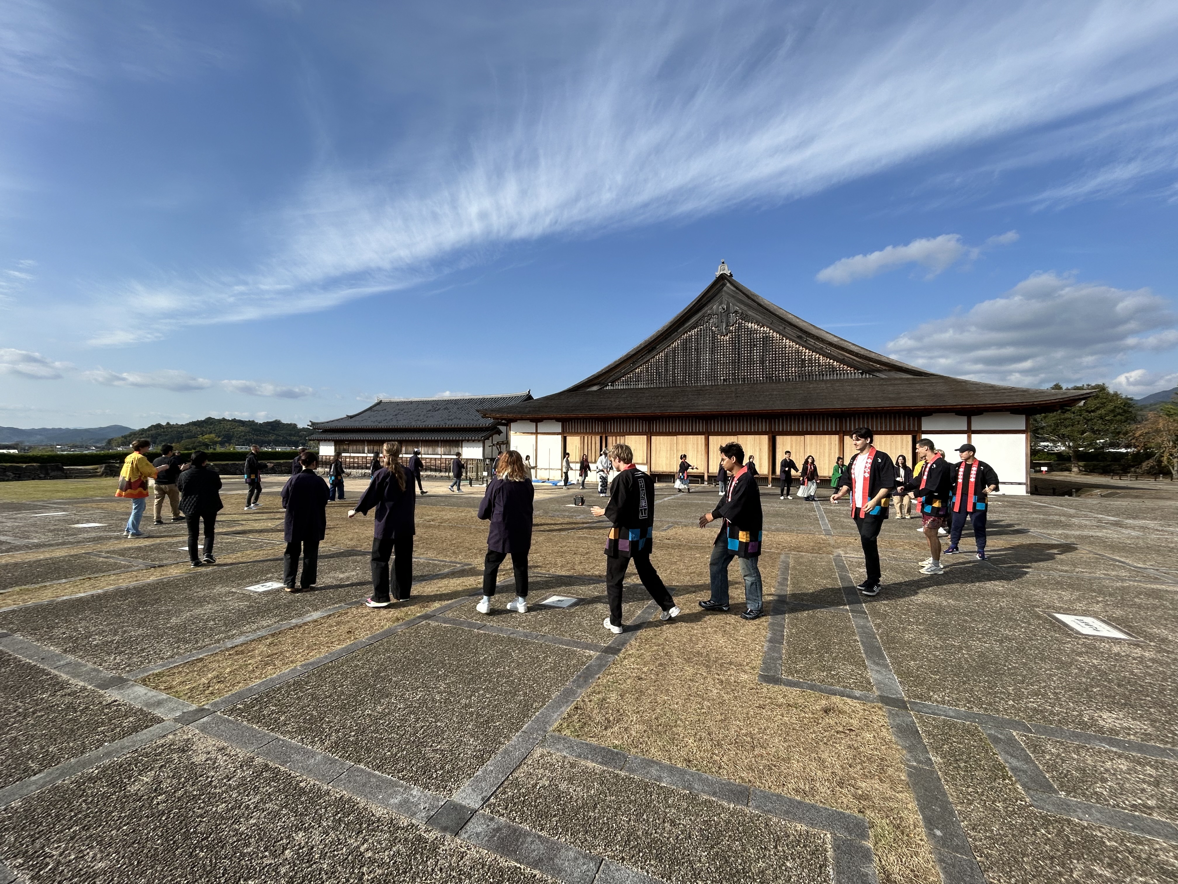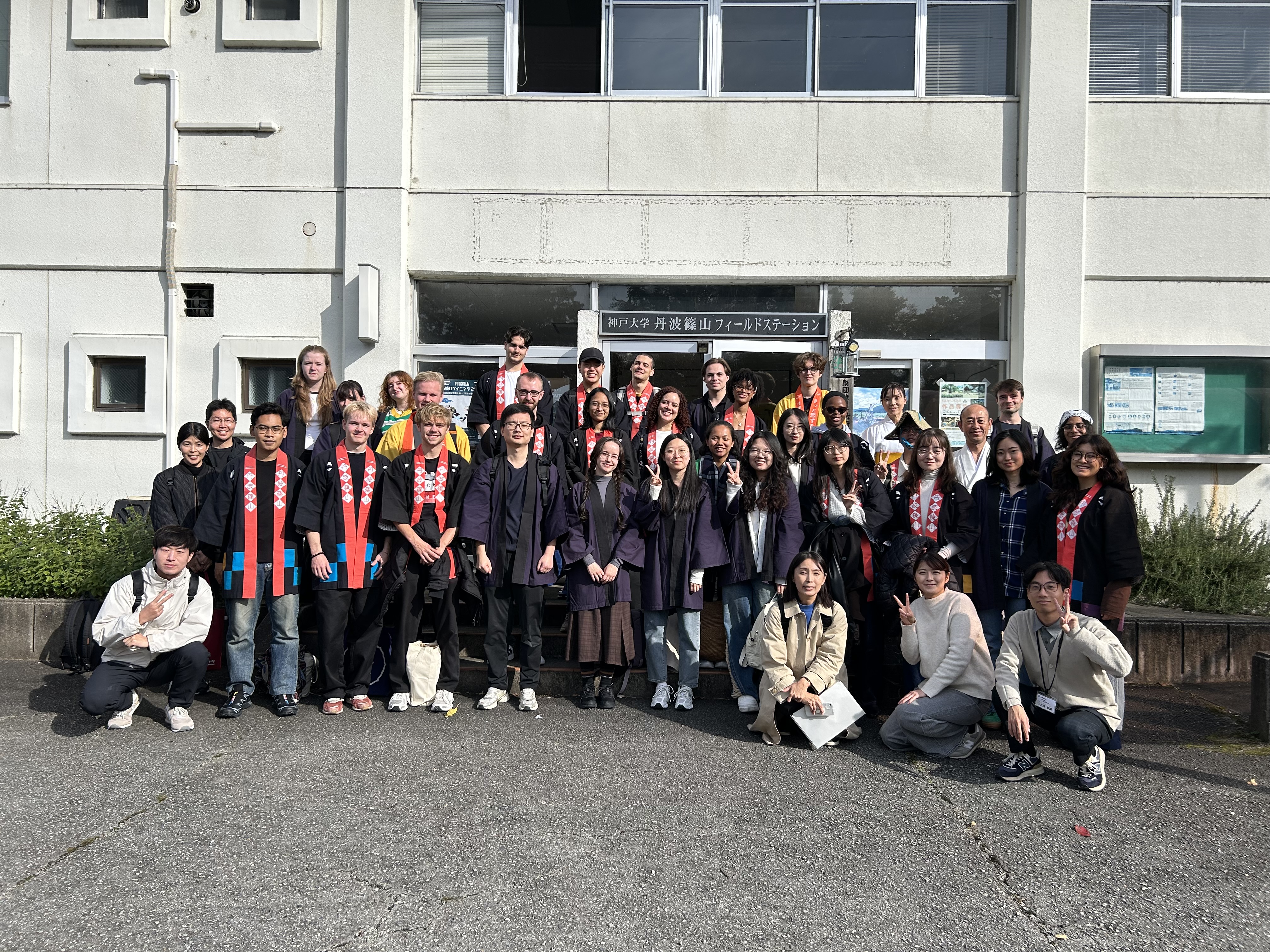 日本文化見学旅行 2025年11月14日 今年も神戸大学に留学中の学生の皆さんが、「日本文化見学旅行」として丹波篠山を訪れてくれました!丹波篠山フィールドステーションでは、市役所職員より丹波篠山市についての説明を行い、あわせてデカンショ踊りの講習を実施。その後、篠山城址へ移動し、参加者全員で輪になってデカンショ踊りを楽しみました!丹波篠山の歴史や文化の魅力を体感していただき、今回の訪問が丹波篠山の魅力発信につながれば嬉しいです。